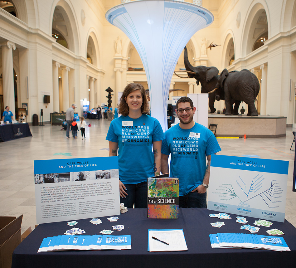 The World of Genomics exhibition has six interactive learning stations staffed by IGB researchers, and features hands-on learning with state-of-the-art microscopy, robotics, activities and artifacts. These exhibits showcase the breadth and depth of IGB research in engaging and creative ways, encouraging active participation by attendees. Our debut was at the Chicago Field Museum in May 2017 for Members’ Nights and local school students and museum visitors over a three day period.