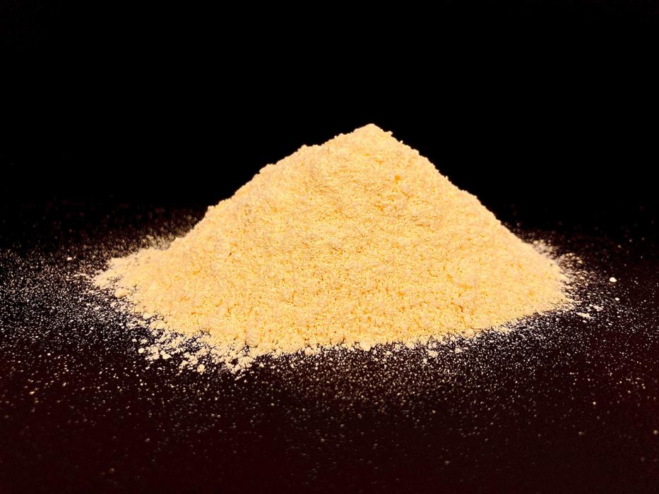Cystic fibrosis is caused by mutations in the cystic fibrosis transmembrane conductance regulator (CFTR) gene responsible for producing the protein that helps regulate the balance of anions and fluid in the lining of the lungs and other organs. CM001 (also known as amphotericin b cystetic for inhalation or ABCI, shown here in powder form) is intended to act as a prosthetic at the molecular scale, replacing the missing protein and restoring ion channel function. / Carle Illinois College of Medicine