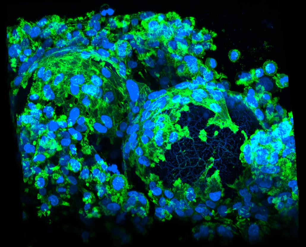 U251 glioblastoma multiforme cells within a 3D gelatin hydrogel imaged using the LSM710 confocal microscope.