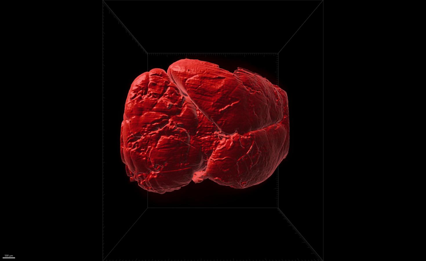 The goal of this project is to understand the solute transport at the extracellular space of a rodent brain by intracranial injection. The tracer used is Texas red dextran 3 and it shows the convection flow path in the brain. The other label is the expression of the circadian gene (PER1) that has a VENUS reporter. This project is being funded by 1R61HL159948-01. The microscope used is the Miltenyi Ultramicroscope and image segmented with the IMARIS software.