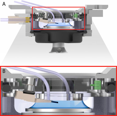 With the sealed cell, Cypher ES Enviromental AFM is capable of controlling your sample environment during scanning such as, Temperature Control, Fluid or Gas Perfusion. Multiple feed throughs on the side door provide easy connection of gas/liquid perfusion lines.