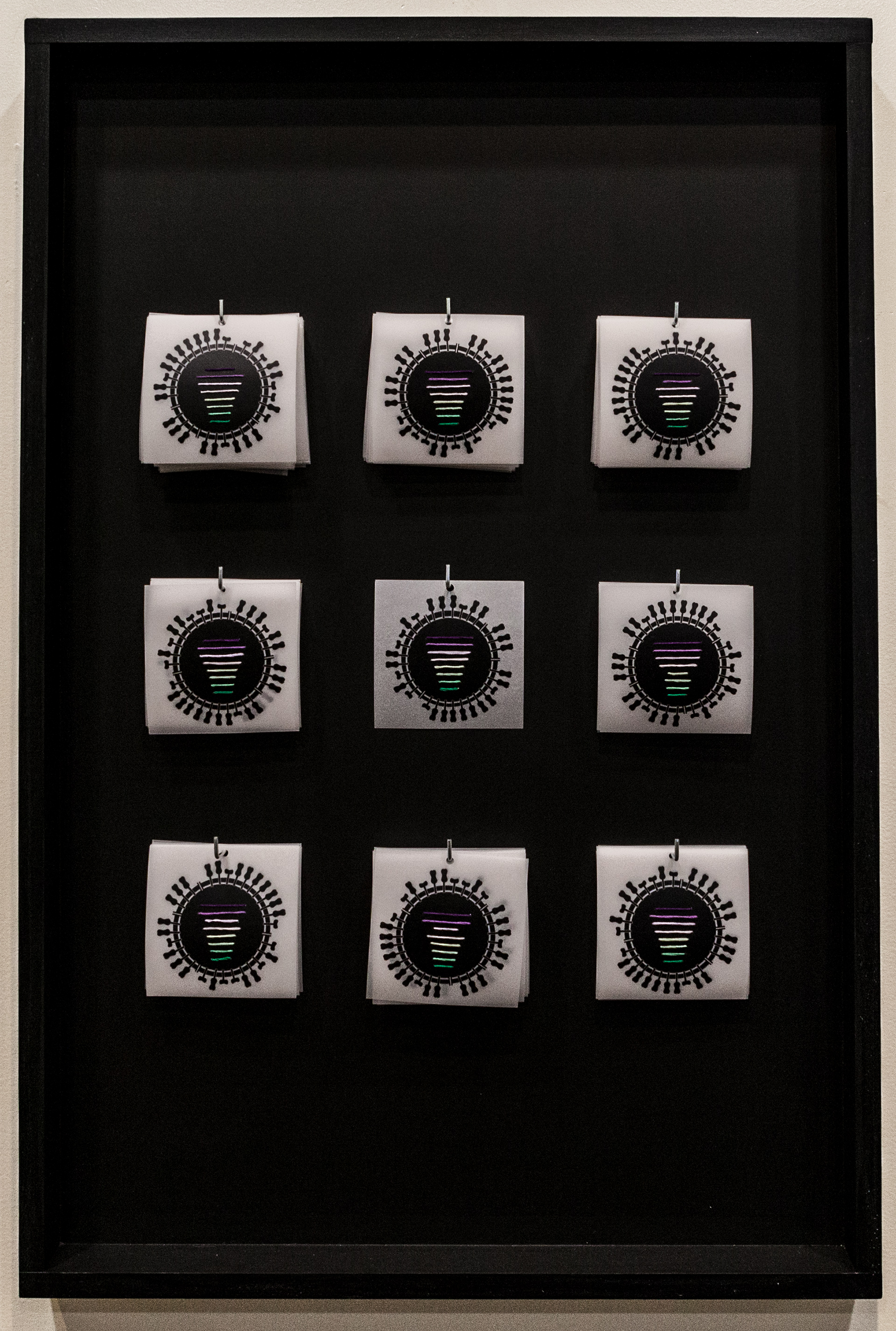 This piece highlights the degradation of the viral genome as it replicates, as well as the different propagation rates of different variants. Researchers do not know why these rates vary; they are exploring this and other questions about the life cycle of influenza. Notice how movement near this piece provokes a dynamic response of the influenza particles that reflects the dynamic nature of flu’s presence inside the body.