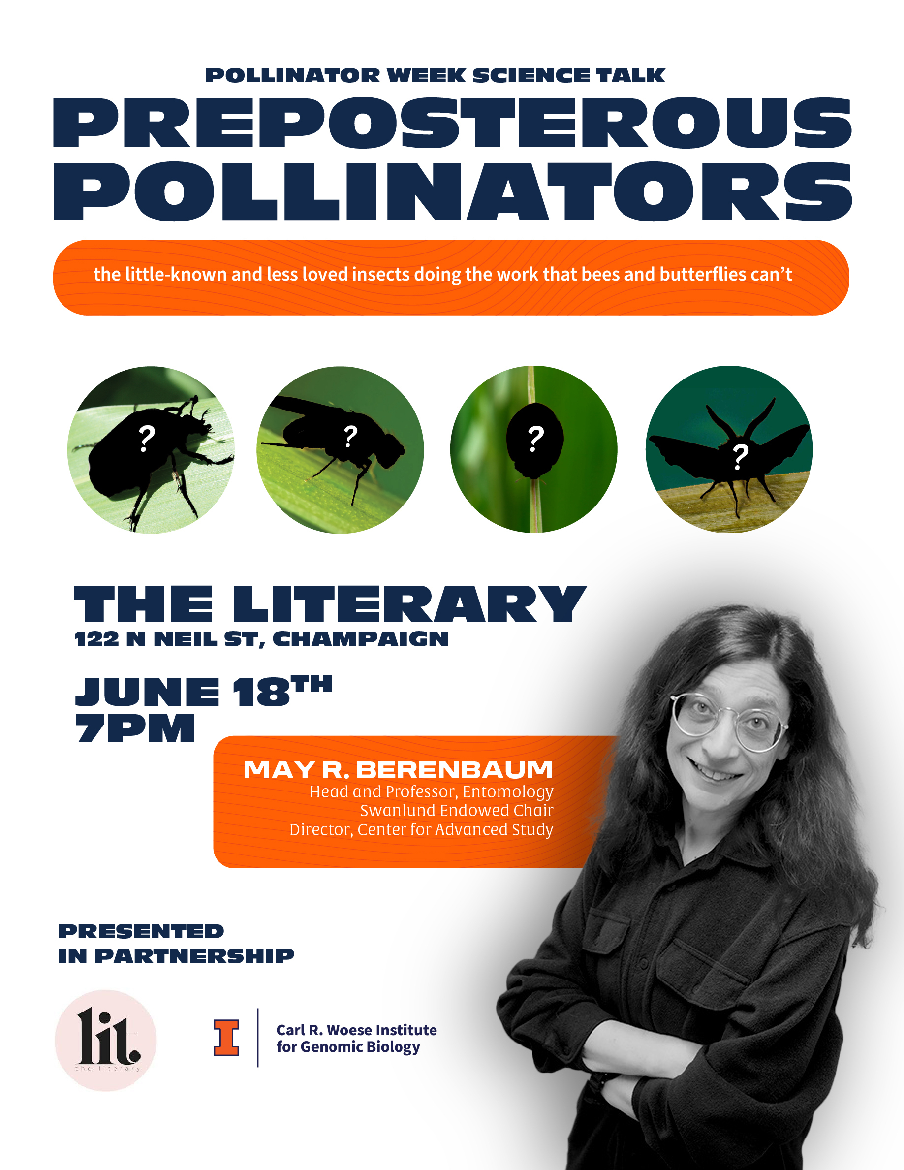 May Berenbaum will be speaking as part of Pollinator Week. Come out to hear this talk and learn about how awesome pollinators are!