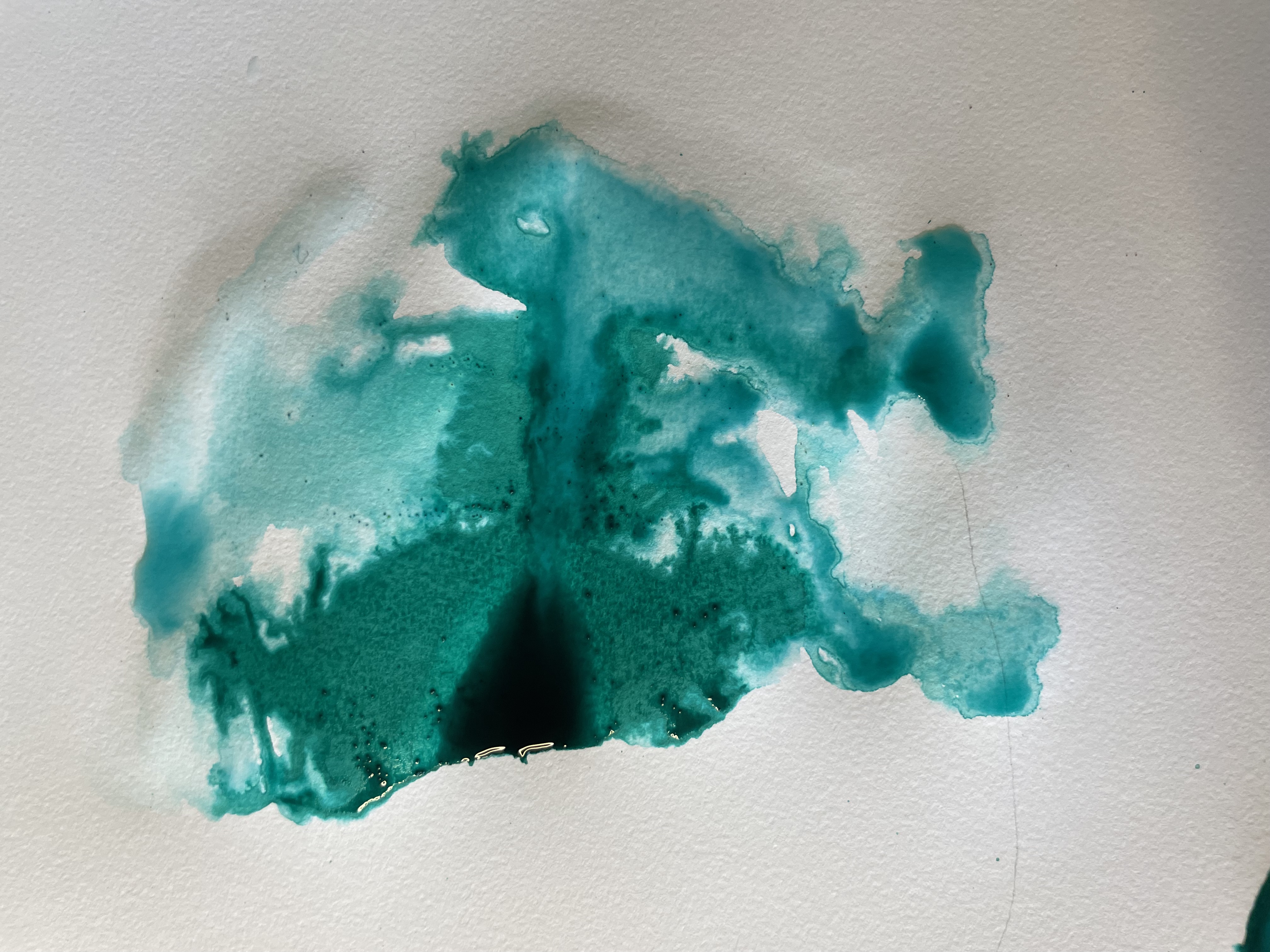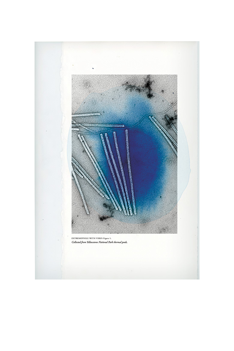 Hostile habitats like hot springs not only serve as homes but also as battlegrounds. Archaea have to contend with viruses that have co-evolved with them to hijack their resources. The three pieces show various viruses that scientists are currently investigating to understand how they interact with their hosts. The artist inked pools of color, which were inspired by the thermal basins at Yellowstone. It serves as a reminder that even under conditions that should be inhospitable, life longs to be.