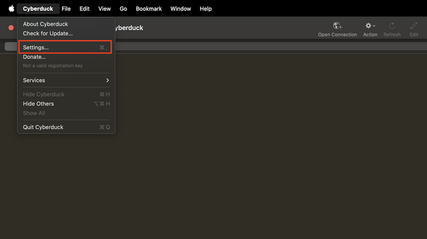 • Once that is complete, you can close the settings pop-up and move on to the next step, Using CyberDuck