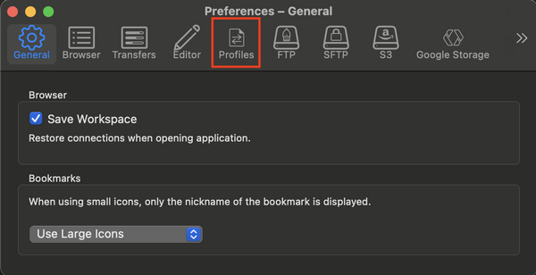 • To save the session so that you can open it easily next time, you can choose Bookmark > New Bookmark, which will create a bookmark for the connection for next time. You will leave all the information the same except for one setting. At the bottom, choose More Options and then for the Transfer Files field, choose Open multiple connections from the dropdown menu.
