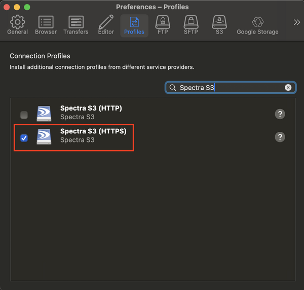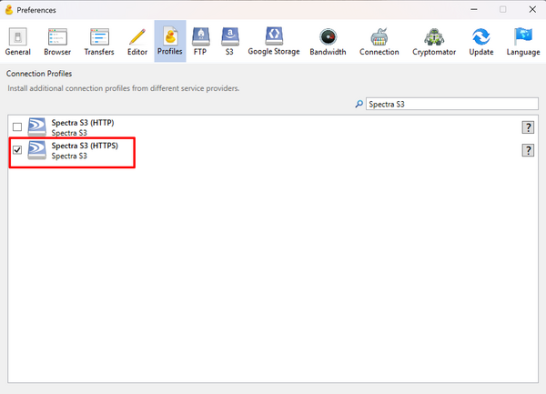 • In the search box, search for Spectra S3 and check the box for Spectra S3 (HTTPS)