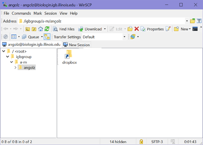 - After you click on Login, you should be connected to your Biocluster home folder, as shown below.