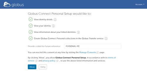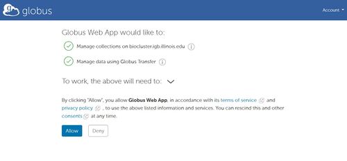 - Click Allow to link your Biocluster account with your Globus account