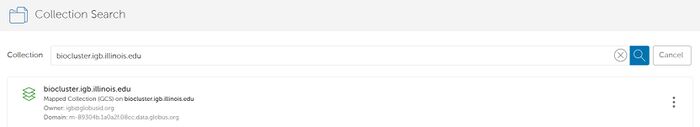 - Search for your collection in the Collection Search Box. For biocluster.igb.illinois.edu, it should find it like below.