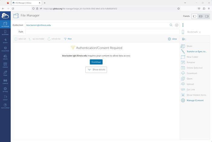 - Now you need to login to a Globus collection. We will be using biocluster.igb.illinois.edu as an example.