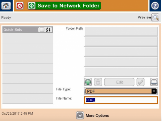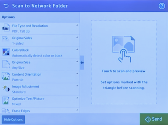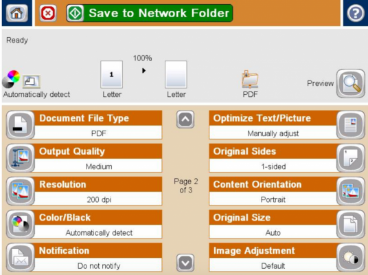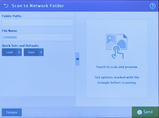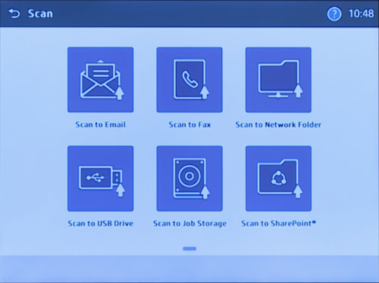 - Tap "Scan to Network Folder". You also have the option to scan to email or USB.