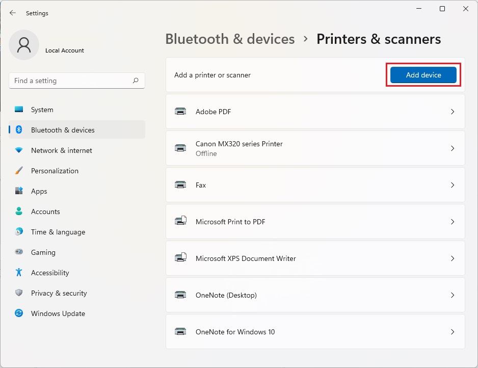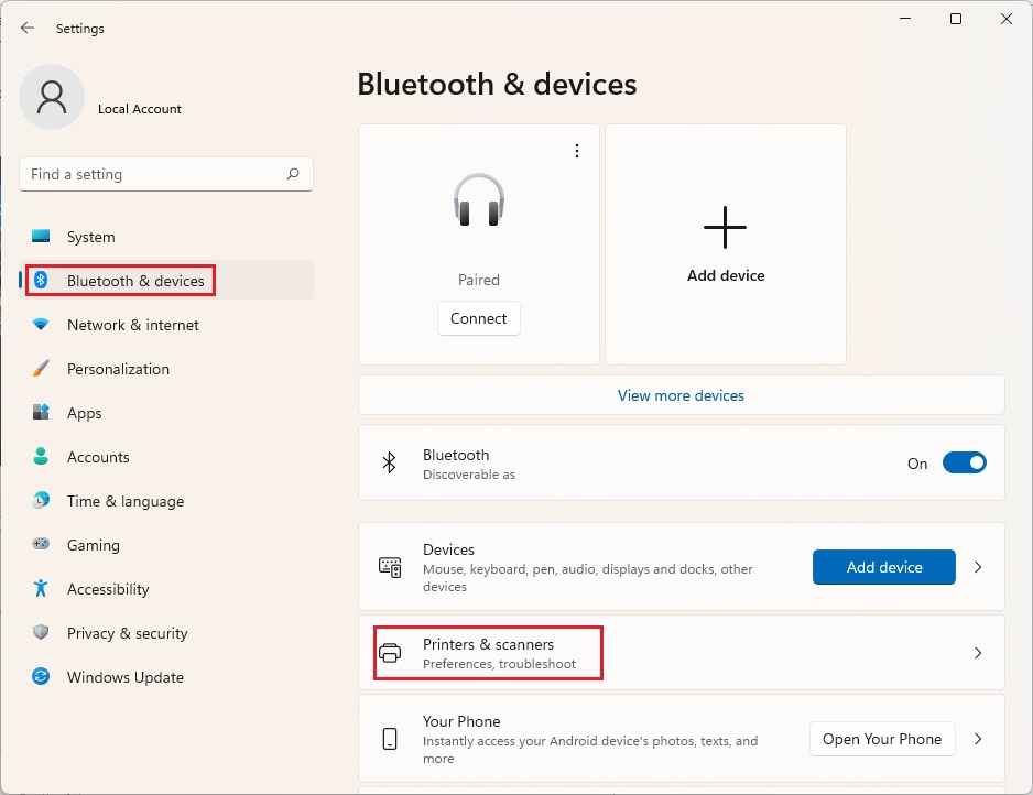 - Click "Bluetooth & devices" and then "Printers & scanners".
