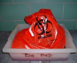 All red bag waste must be autoclaved at 250F/121C for a minimum of 60 minutes